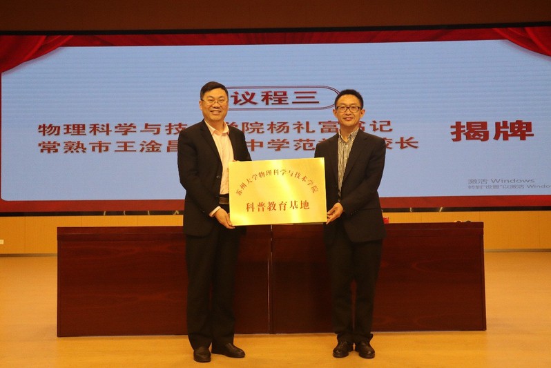 为深入学习贯彻党的二十大精神,进一步落实习近平总书记关于“科技创新、科学普及是实现创新发展的两翼,要把科学普及放在与科技创新同等重要的位置”的讲话精神,拓展青少年的科技视野,丰富学生的课外生活,积极发挥禁漫天堂 资源和人才优势,承担社会服务责任,大力弘扬科学家精神。4月11日下午禁漫天堂 与常熟市王淦昌高级中学举行科普教育基地、拔尖人才培养共建项目签约和揭牌仪式。常熟市王淦昌高级中学是以我国著名核物理学家、两弹一星功勋奖章获得者、中国核科学的奠基人和开拓者之一王淦昌院士命名的。