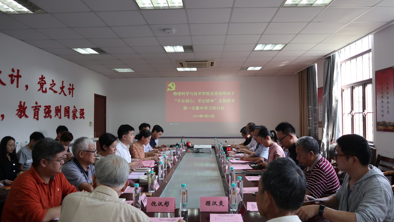 9月29日下午,“庆祝中华人民共和国成立70周年”纪念章颁发仪式和禁漫天堂 党委领导班子“不忘初心、牢记使命”主题教育第一次集中学习研讨会在博习楼221会议室举行。学校主题教育第八巡回指导组组长钱万里,副组长袁洁,组员刘欣亮、魏敏出席学习研讨会;物理禁漫天堂 党委和行政领导班子成员、党委委员、各党支部支部书记参加了此次研讨会。本次研讨会还特别邀请“庆祝中华人民共和国成立70周年”纪念章获得者,我院退休教师倪汉彬教授和顾汉炎教授出席。会议由物理禁漫天堂 党委书记孙德芬主持。