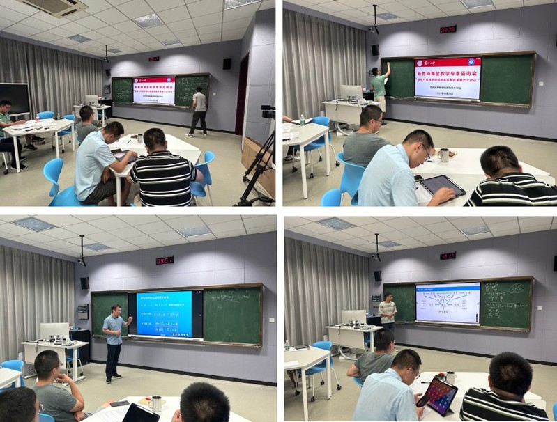 8月25日上午9点,我院在物理科技楼412微格教室组织开展了新教师课堂教学专家咨询会,暨现代物理学课程群虚拟教研室第六次会议,教学督导戴苏明和须萍教授进行了现场指导,现代物理学课程群虚拟教研室成员朱成杰、史振中、赵永峰、陈垂针、刘波、周宇等老师参与研讨活动,本次活动由副院长周丽萍、杭志宏共同主持。