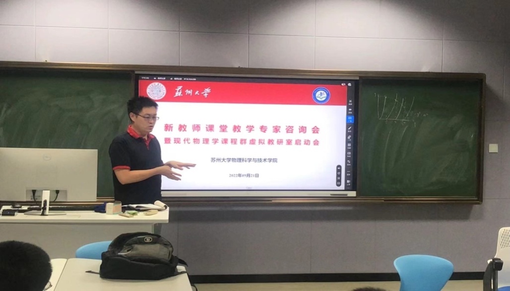 9月21日下午2点,我院在物理科技楼412微格教室组织开展了新教师课堂教学专家咨询会暨现代物理学课程群虚拟教研室启动会,活动由周丽萍副院长主持,教学督导戴苏明、以及蒋建华、桑芝芳、须萍、杨俊义等教学经验丰富的教授进行了现场指导,现代物理学课程群虚拟教研室全体成员参加会议并开展首次教研室活动。