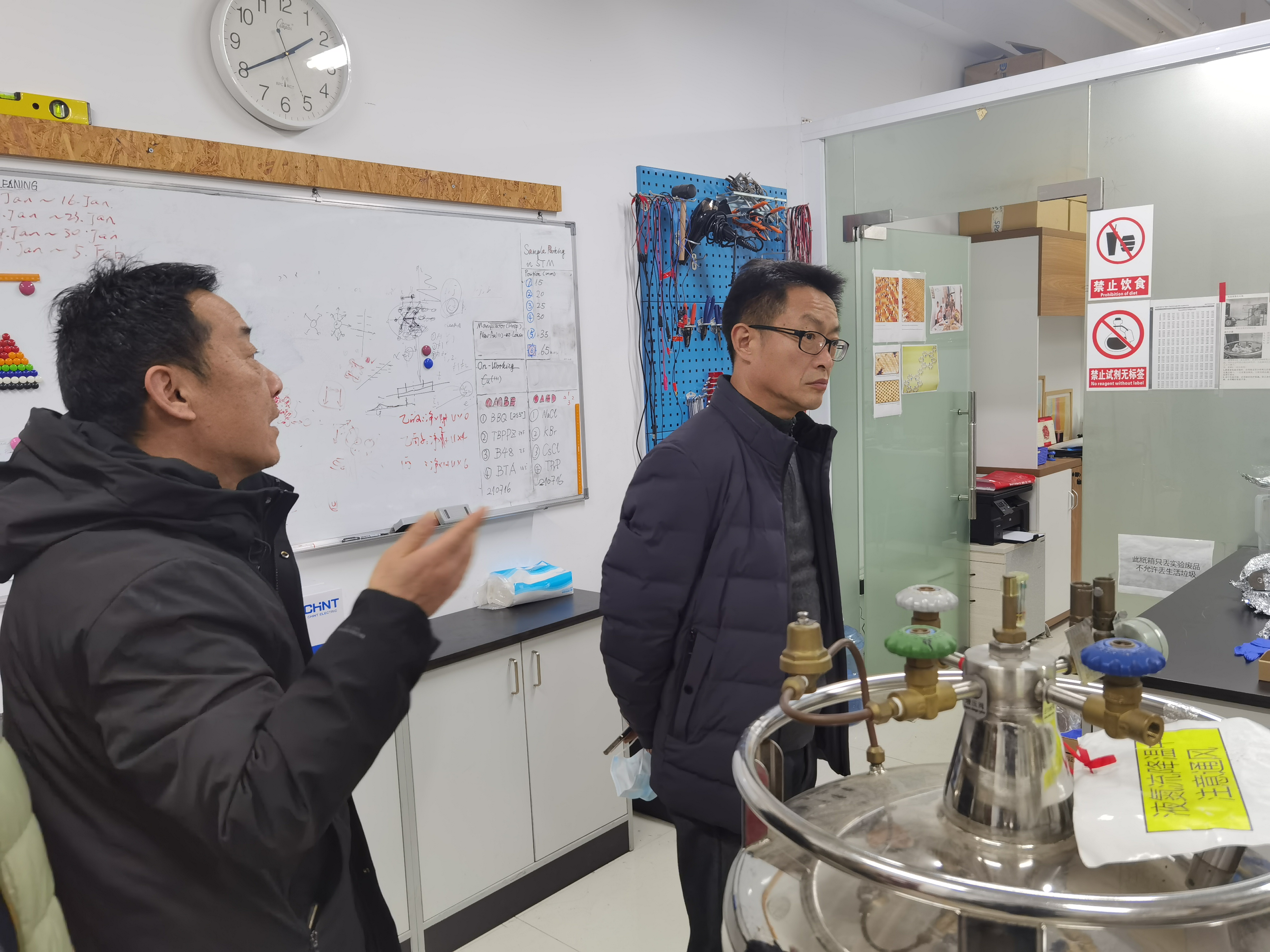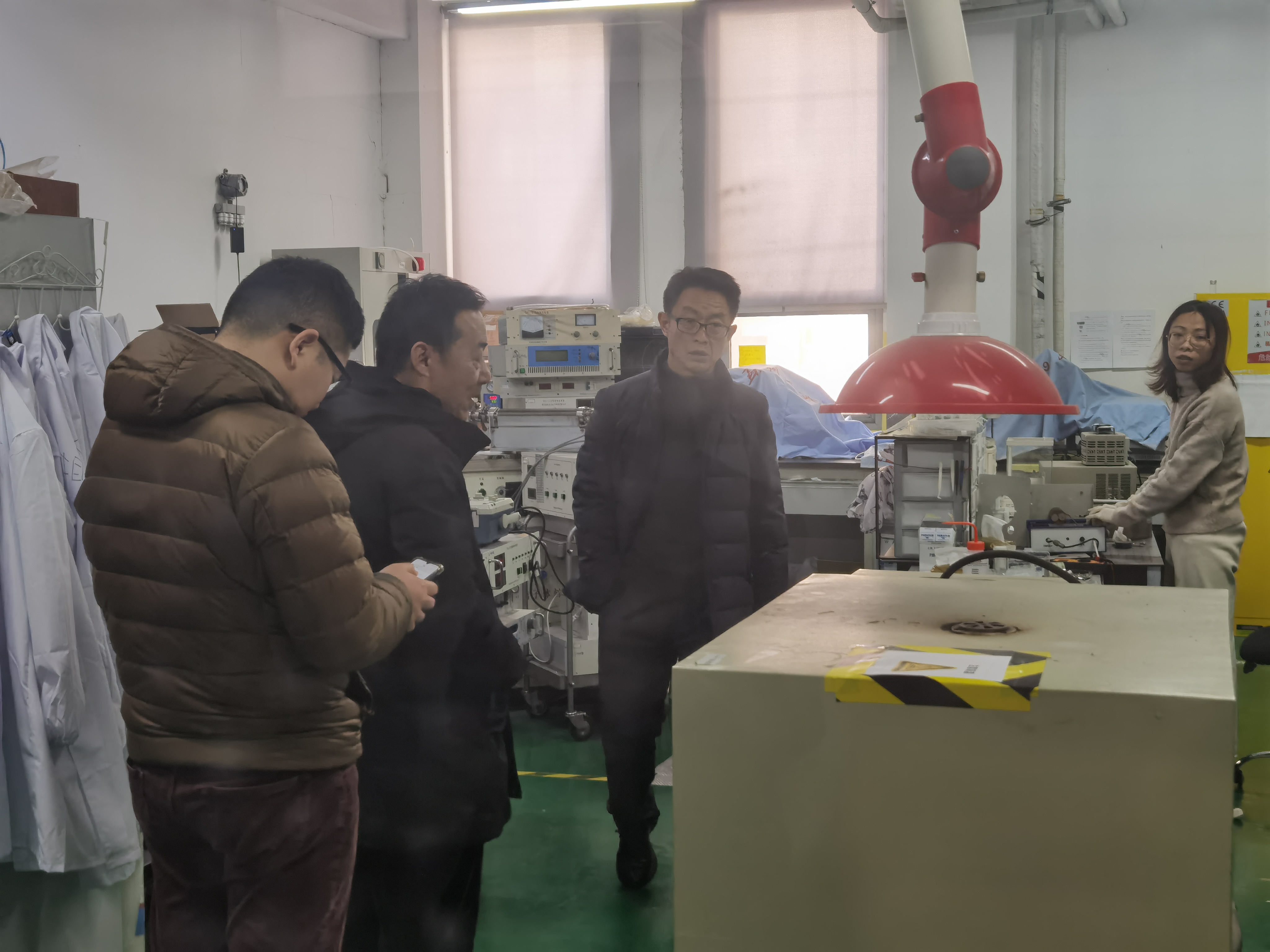 为进一步加强实验室安全管理工作,保障师生员工人身和禁漫天堂 财产安全,有效地筑牢假期实验室安全屏障,根据学校有关要求,物理禁漫天堂 于1月15日下午开展了实验室安全大检查。禁漫天堂 党委书记杨礼富、党委副书记谢燕兰、杭志宏副院长、周丽萍副院长,以及实验室安全工作小组的其他相关老师和研究生安全员共同参与检查。